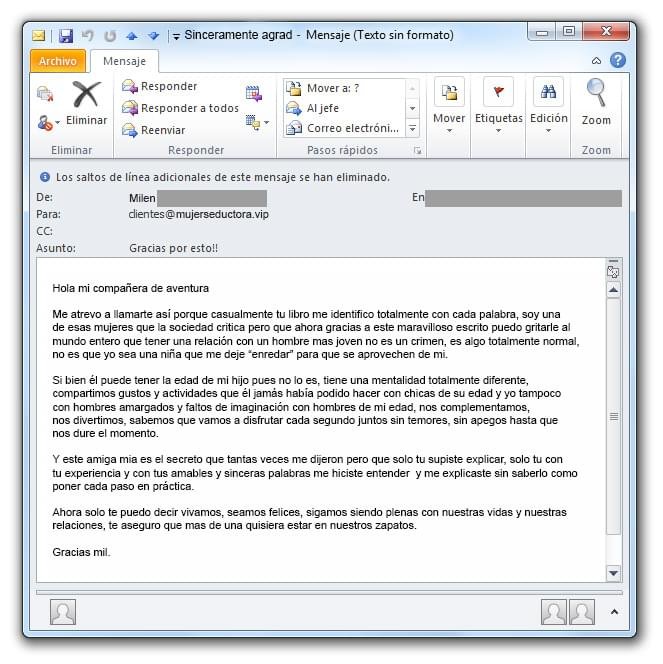 A diario recibo docenas de correos de clientas satisfechas como estas...